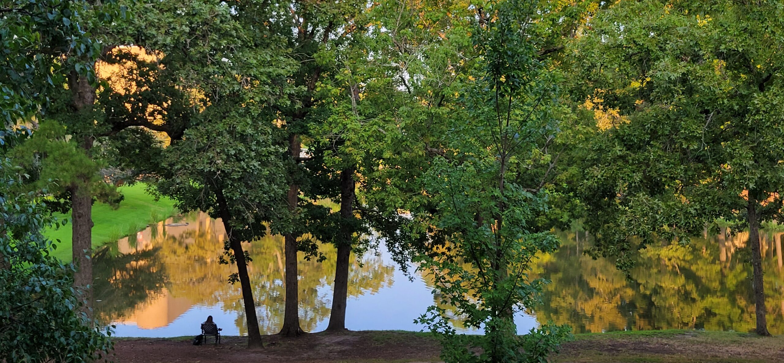 Sidewalk + Person Sitting Alone at Harvey Lake