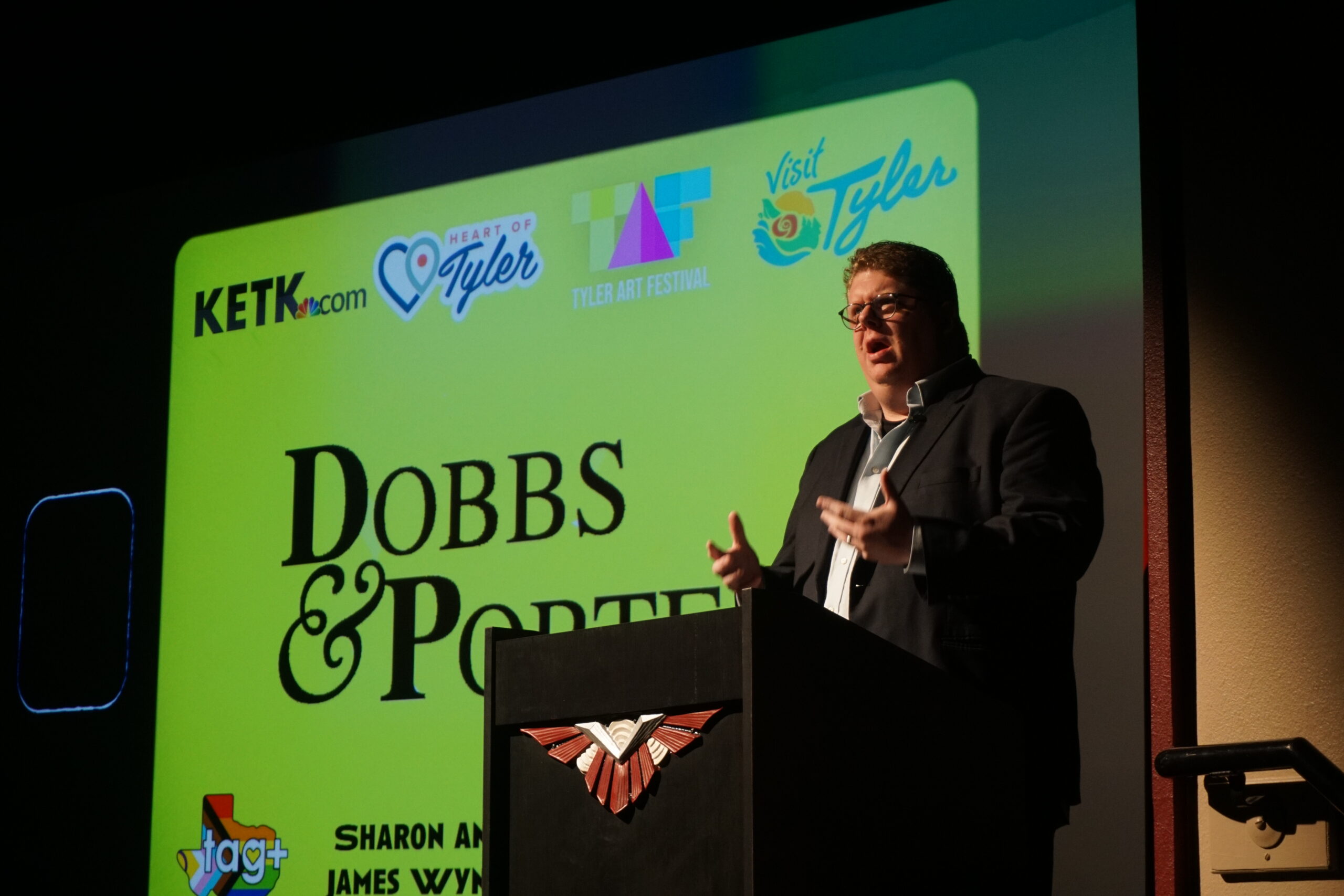 Stewart Smith, emcee of the event, presents the films on night two.