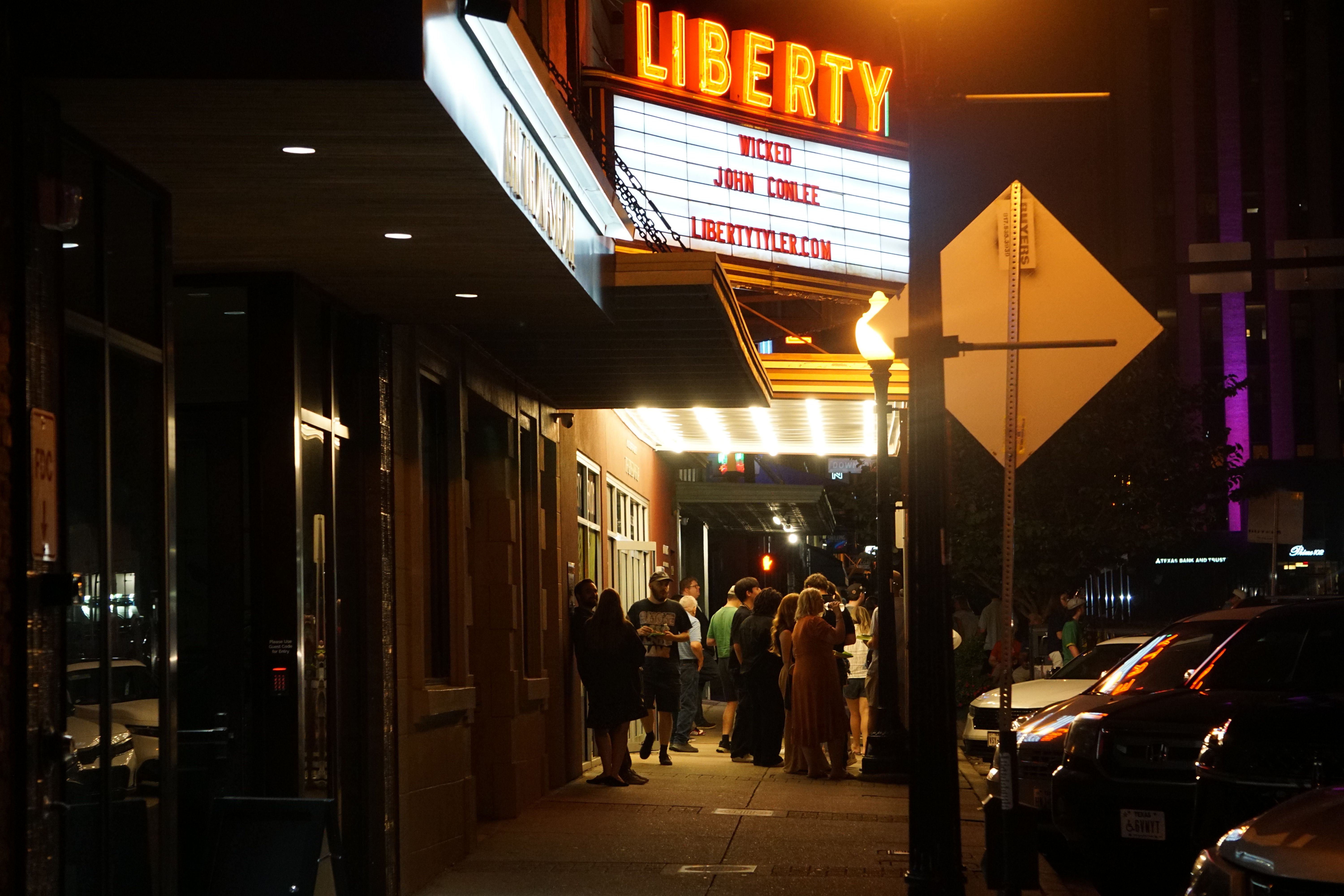 A crowd flows out of the Liberty Theater, chatting about the evenings showings while a committee tallies up the votes for crowd favorite.
