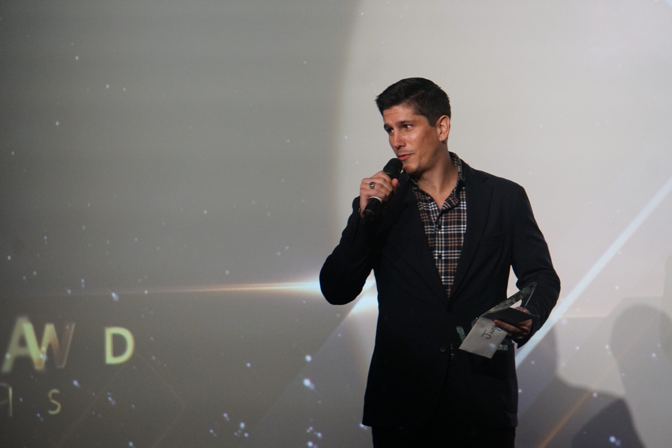 Aaron Goldenberg, who directed “Champions” with his brother Asher, accepts the award for Best in Festival.