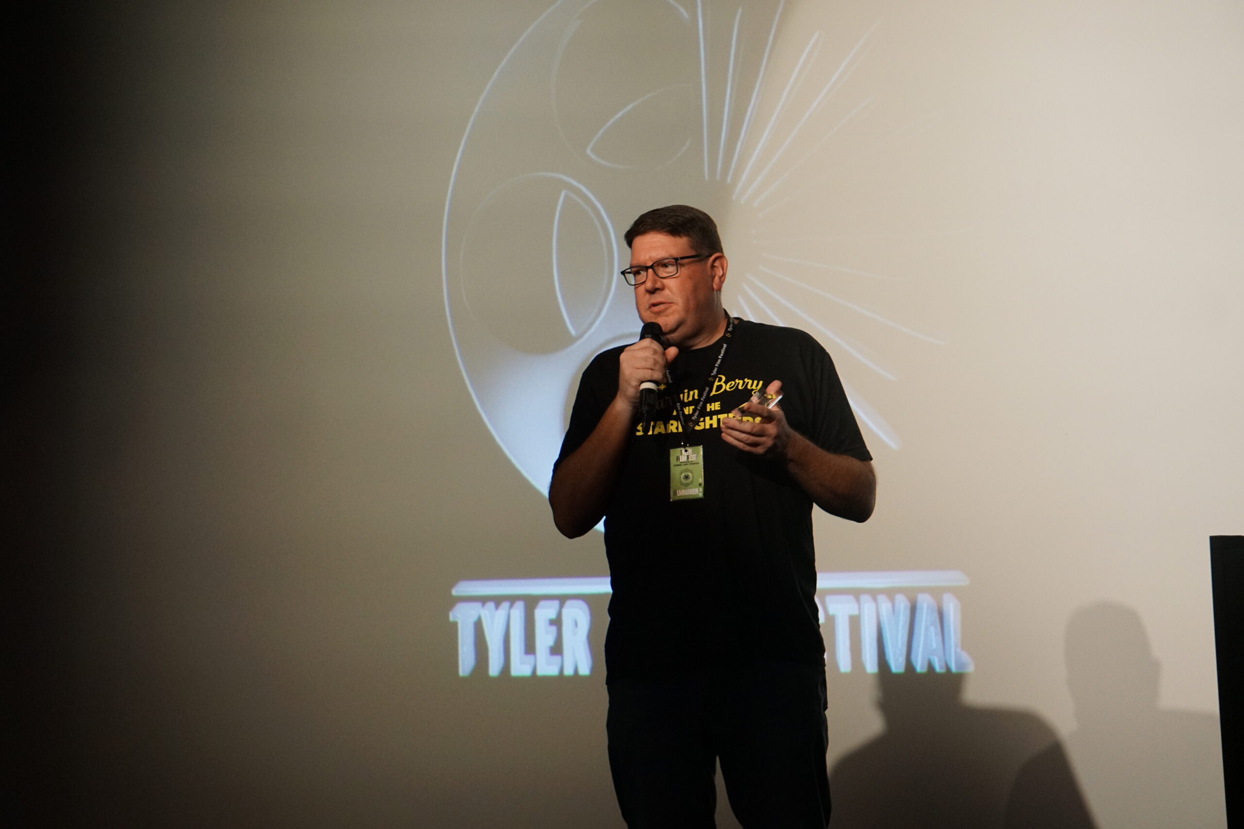 Erik Anderson, an actor in El Lloron, accepts the award for audience favorite.
