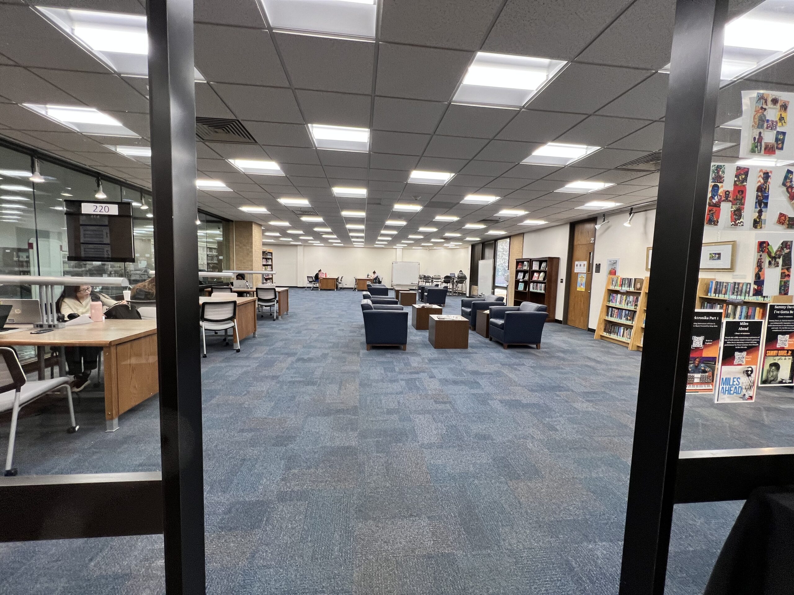 The library recently installed a glassed-in group seating area, which is available for anyone to sit by themselves or with other people. Photo courtesy of Megan Williams